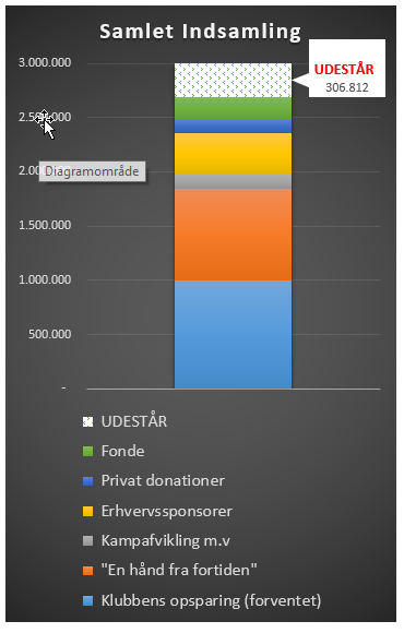 Projektgruppen bag Projekt Kunstgræs har desuden tjent ca. 138.000 kr. i forbindelse med kampafvikling. Sidst men ikke mindst modtog projektet i 2017 knap 840.000 fra en nu nedlagt støtteforeningen. Donationen er vist med orange farve i diagrammet.