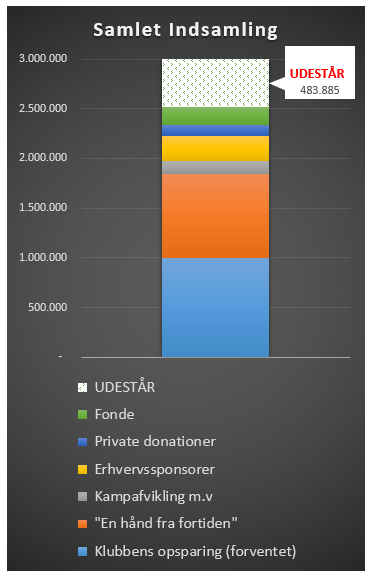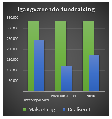 Den sidste million indsamles fra fonde, erhvervssponsorer og private. Og af denne sidste million er præcis 538.408 kr. kommet i hus i skrivende stund.